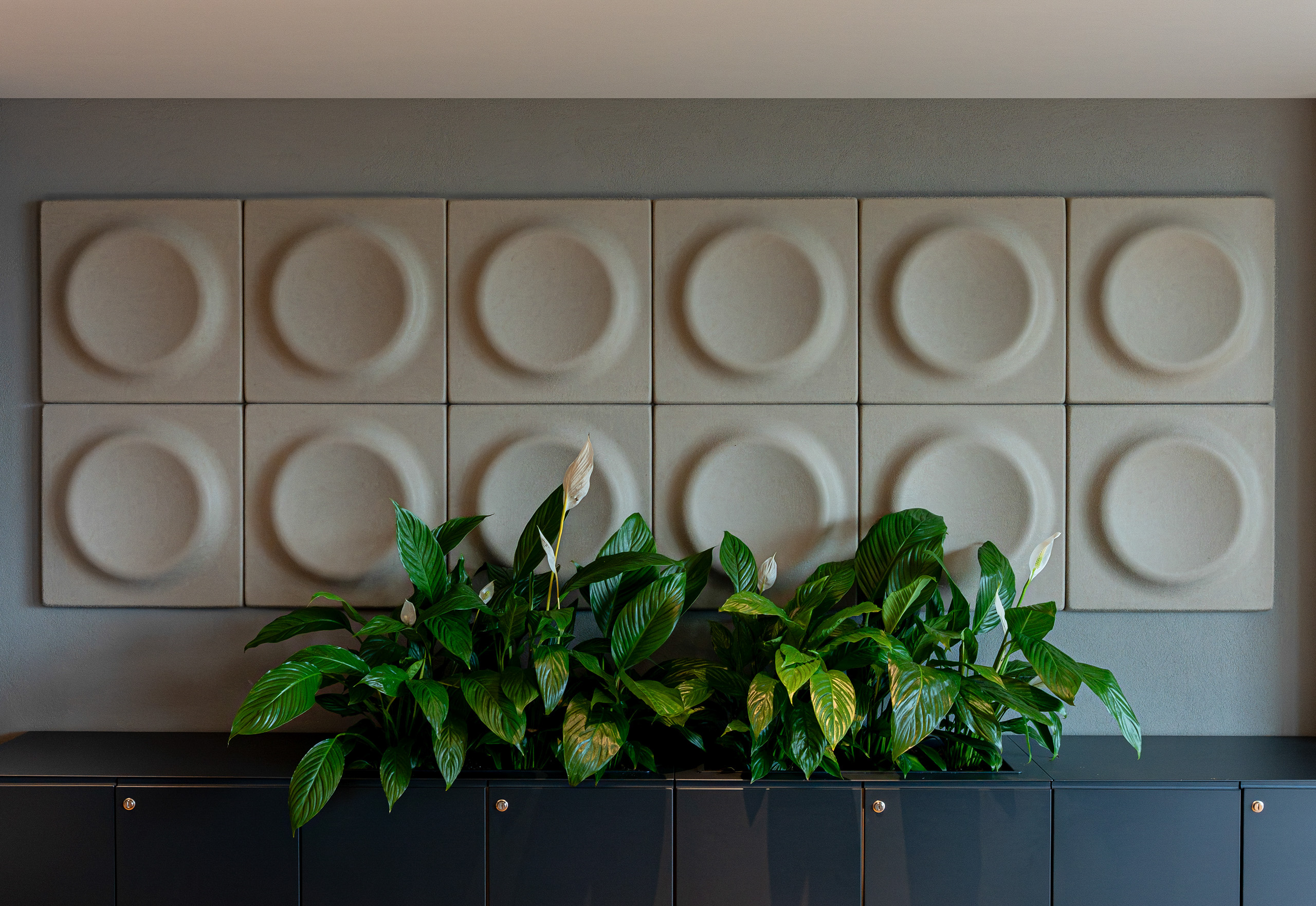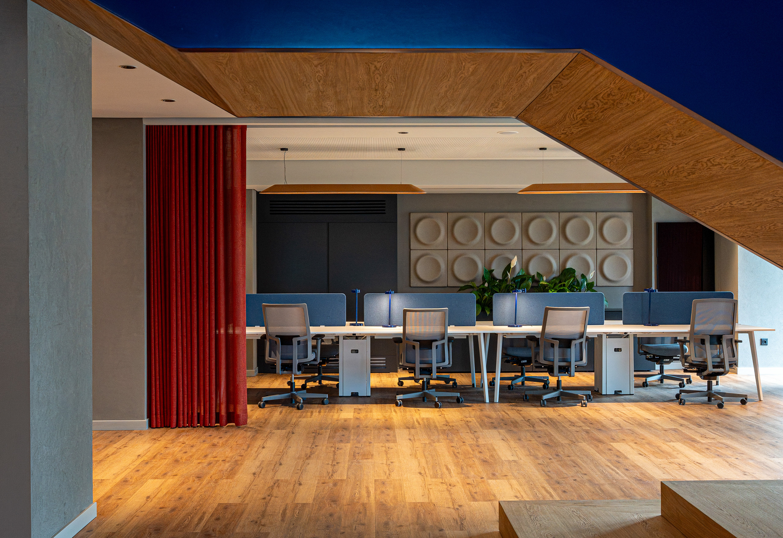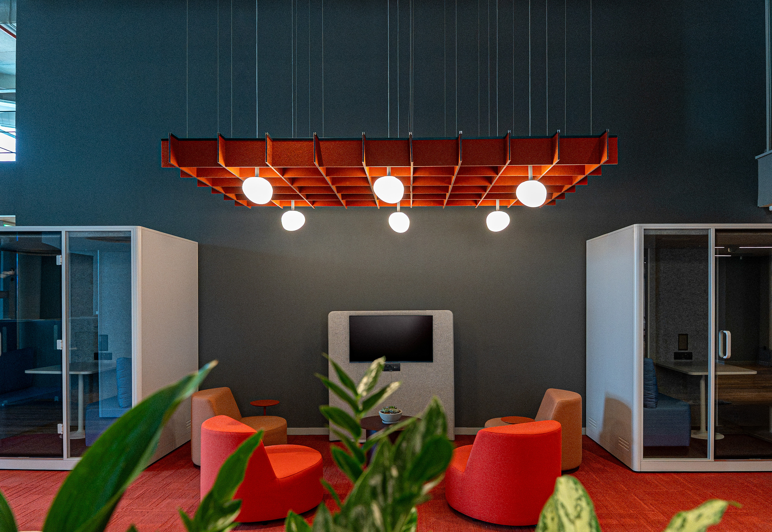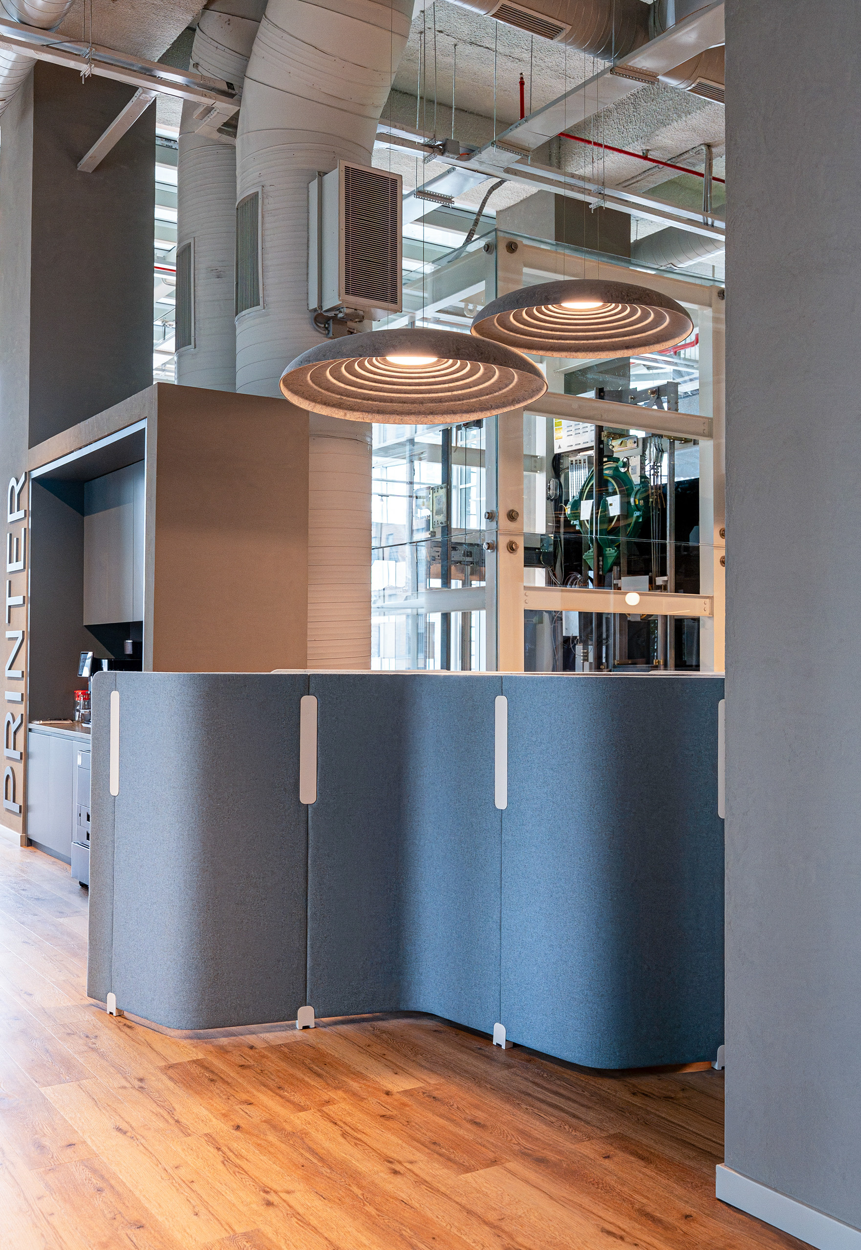 Meanwhile, the walls of the open office areas feature Octopus wall panels. Their organic geometry adds visual texture while also helping control noise levels typically generated in collaborative workspaces.
