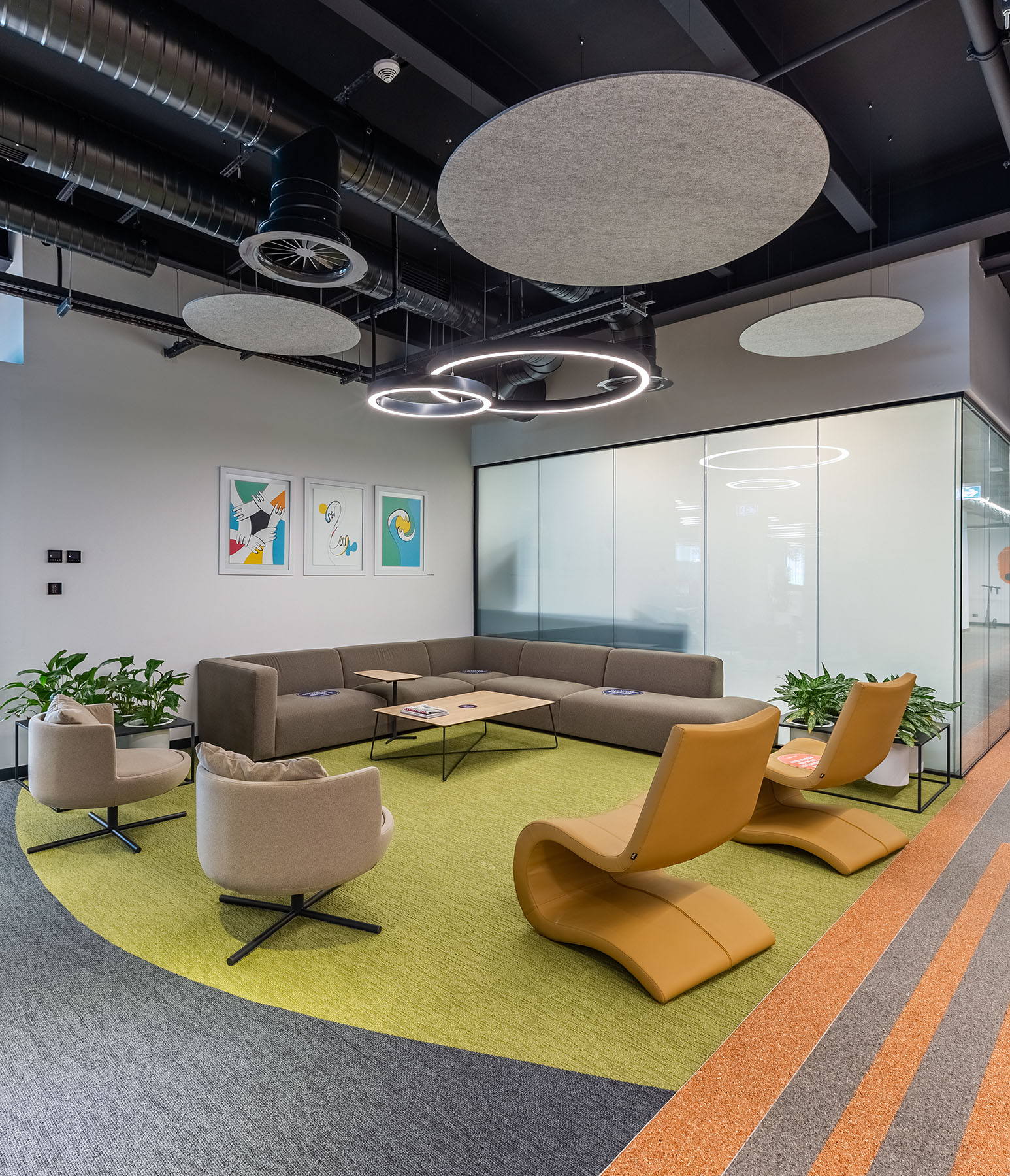 In Enerjisa Üretim Head Office, all acoustic problems have been solved in a consisting of a 5550 m2 closed area. All the acoustic production needs of the office were supplied, custom production and standart acoustic PET felt designs were prepared and manufactured by Feltouch.