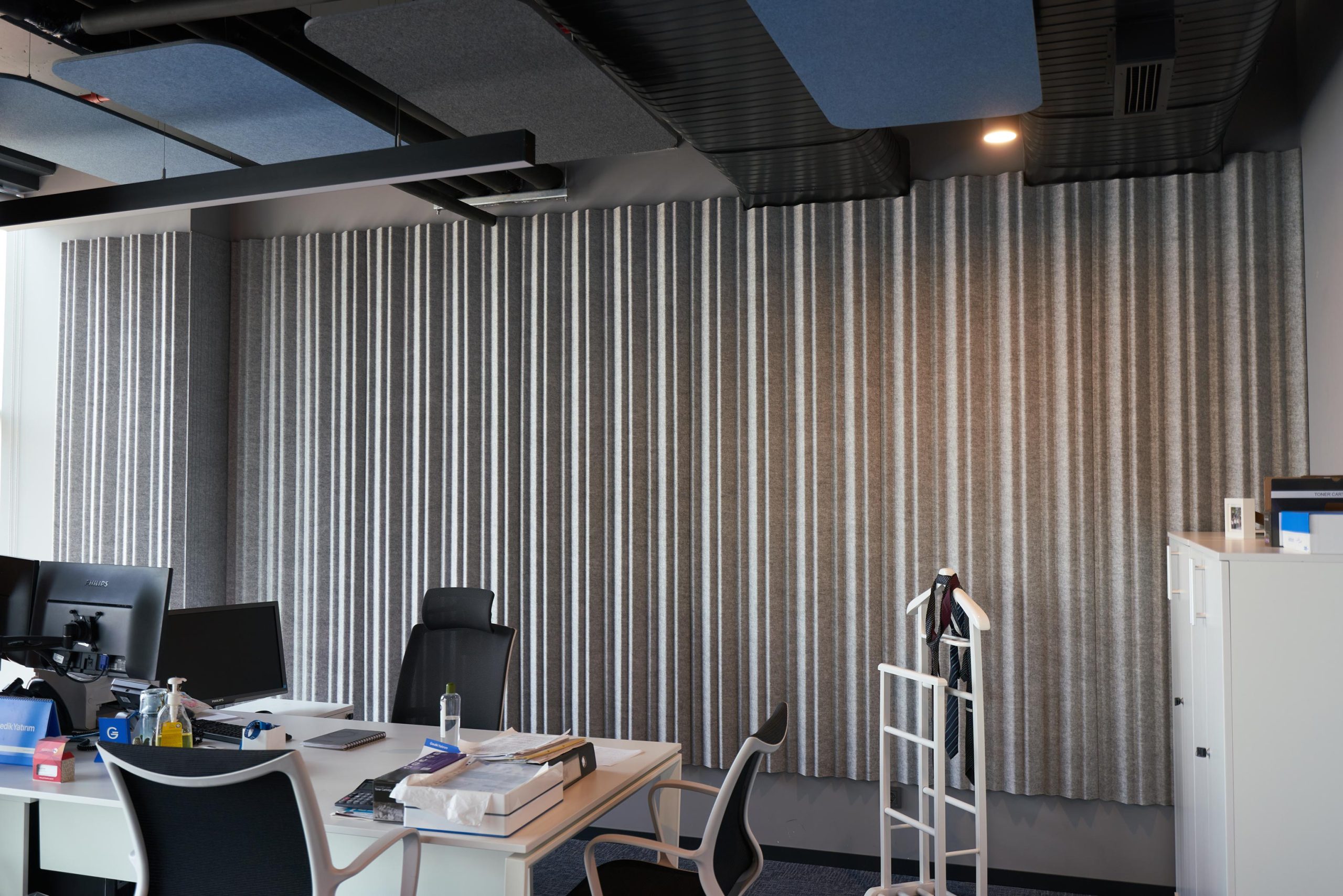 Gedik InvestingProject name: Gedik Investing Designed by: Idee Decor Photographer: Oğuzhan Sarı Feltouch products: V-Plate, Flat Cloud, Cracker Acoustic Solutions: Ceiling, Cladding