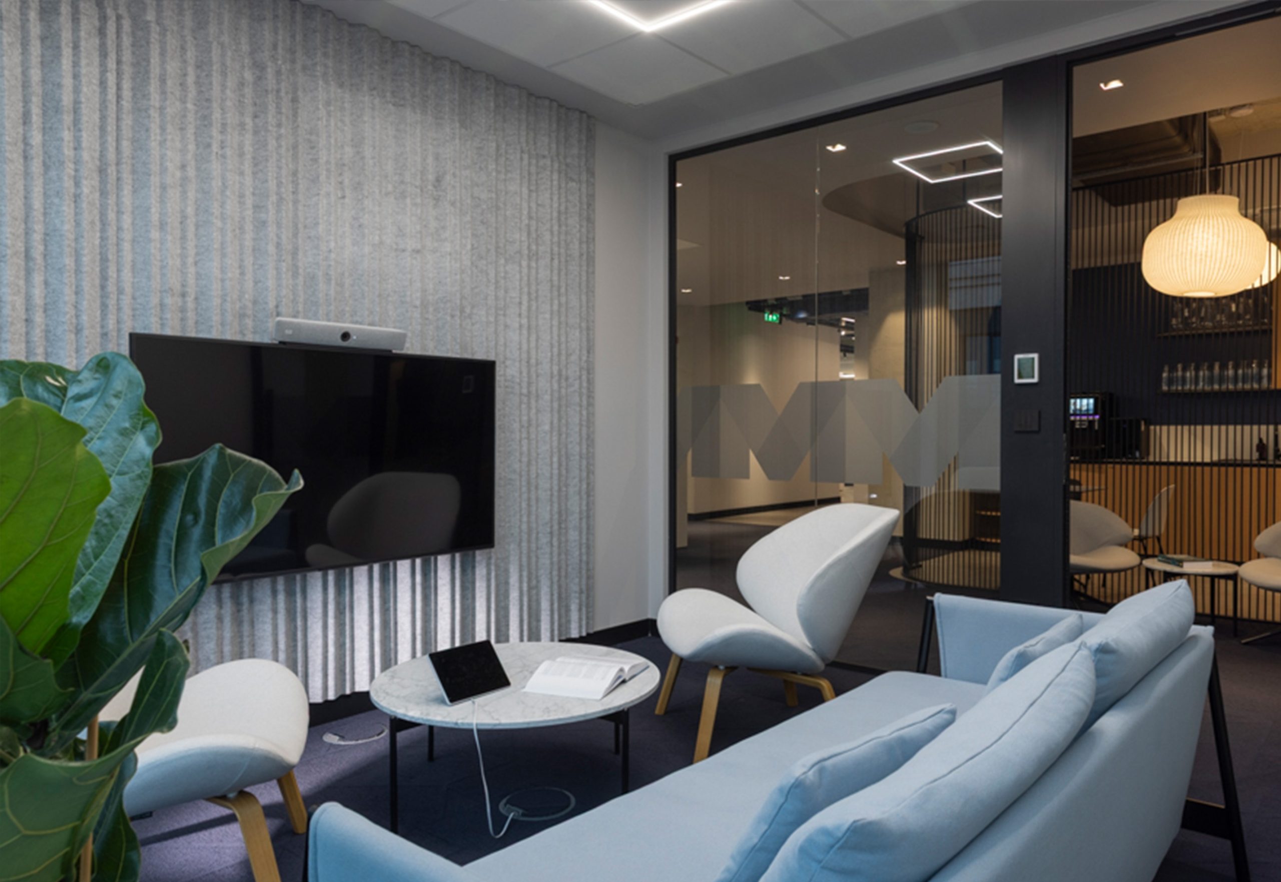 Man Group project creates a clear and comfortable workplace where acoustic performance supports daily work. The space combines strong visual identity with functional acoustic panels.