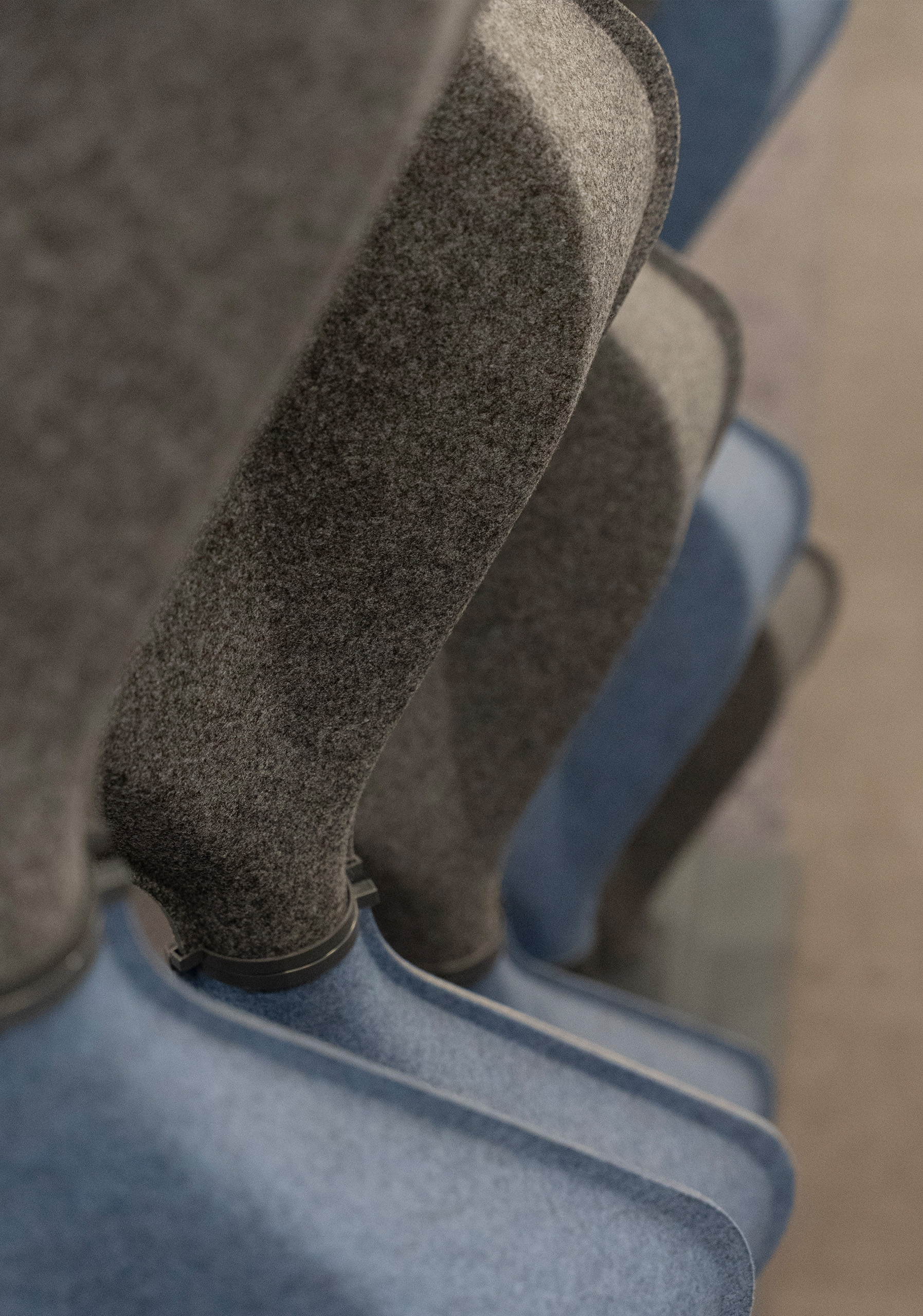 For this reason, the project integrates different Feltouch solutions across the interior. In circulation and shared areas, Make Up suspended lighting is installed on the ceiling. This solution supports both lighting and acoustic comfort. Additionally, Diagon dividers define work zones and limit sound transfer between nearby spaces. At the same time, they maintain visual openness.