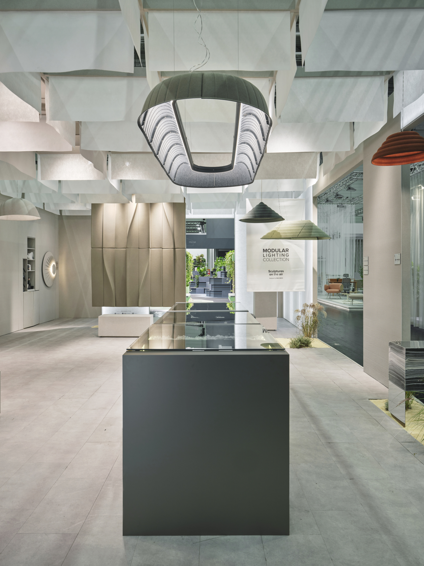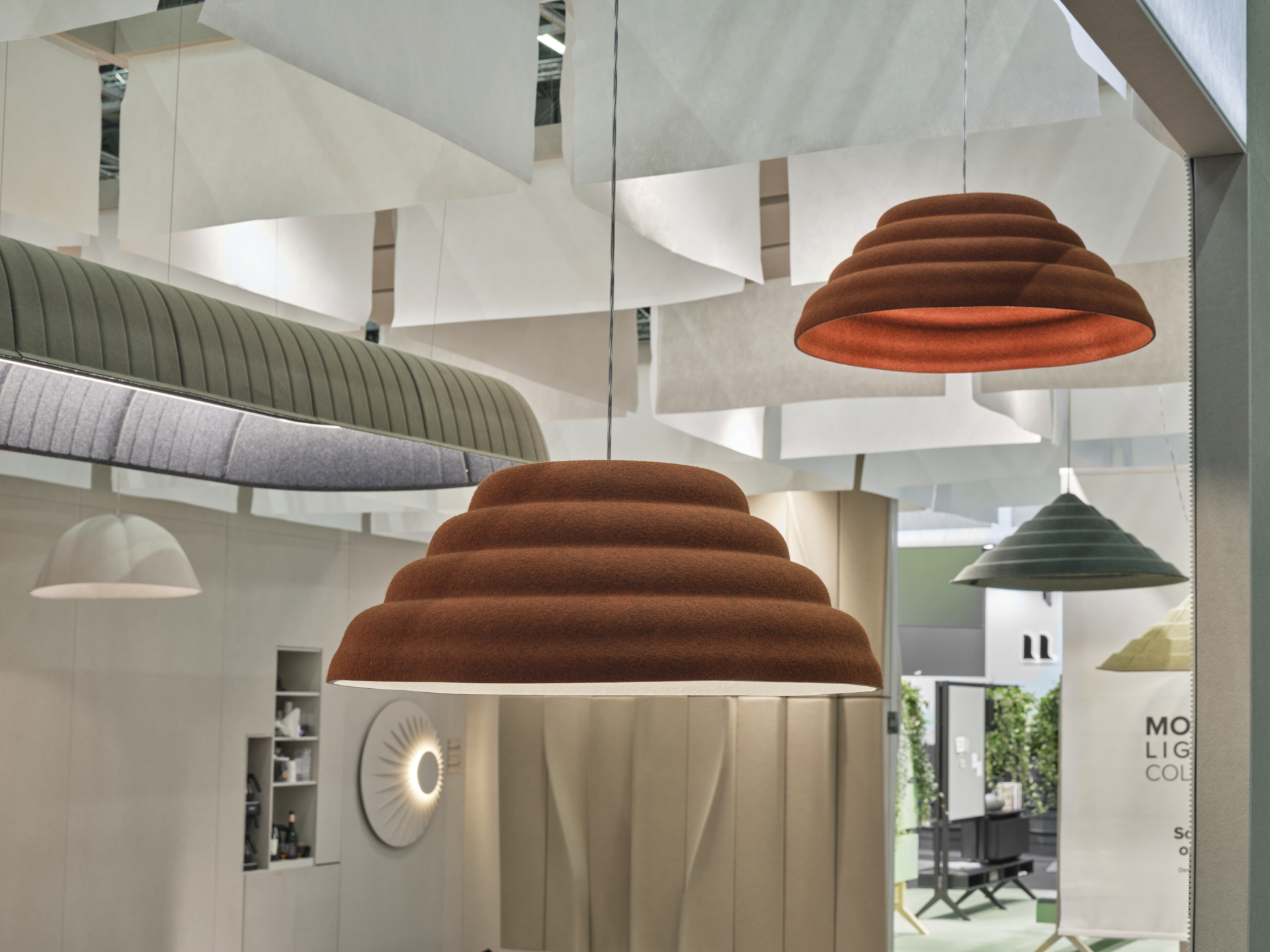 The modules of the SEGMENT lampshade are moulded in recycled PE felt and have a significant acoustic impact on the room.